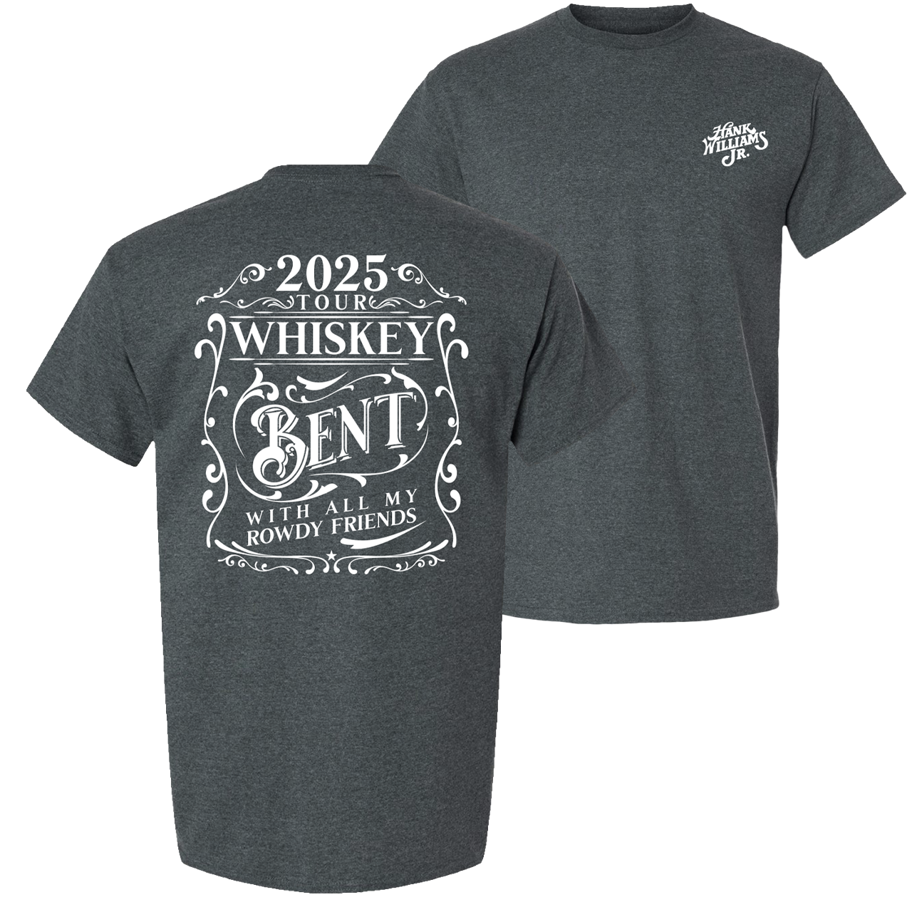 This 2025 Tour Tee is built for those wild nights out and mornings you don’t remember. With a classic fit, ornate white print, and that Hank Williams Jr. signature touch, it’s a surefire way to let the world know you’re whiskey bent and proud of it.